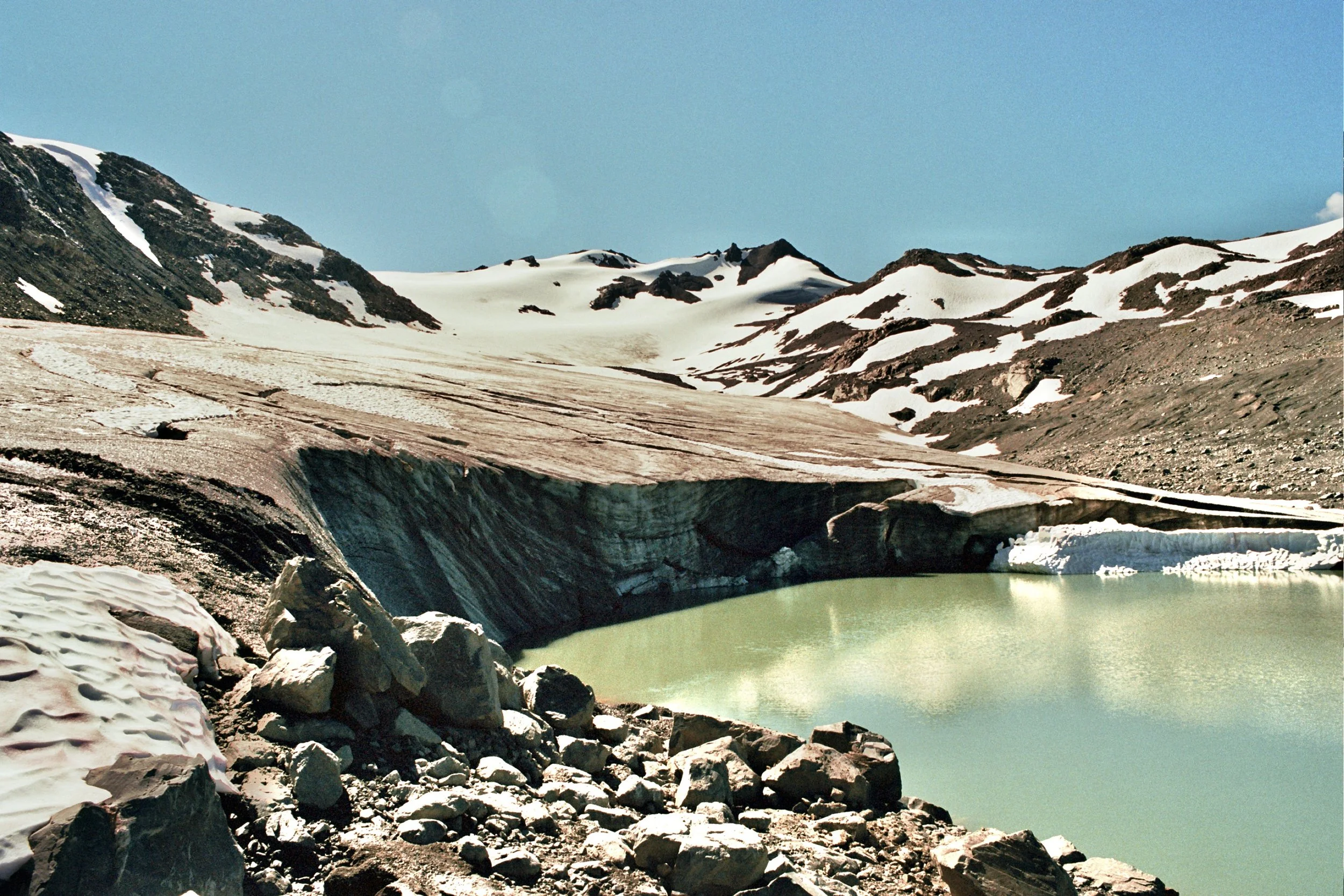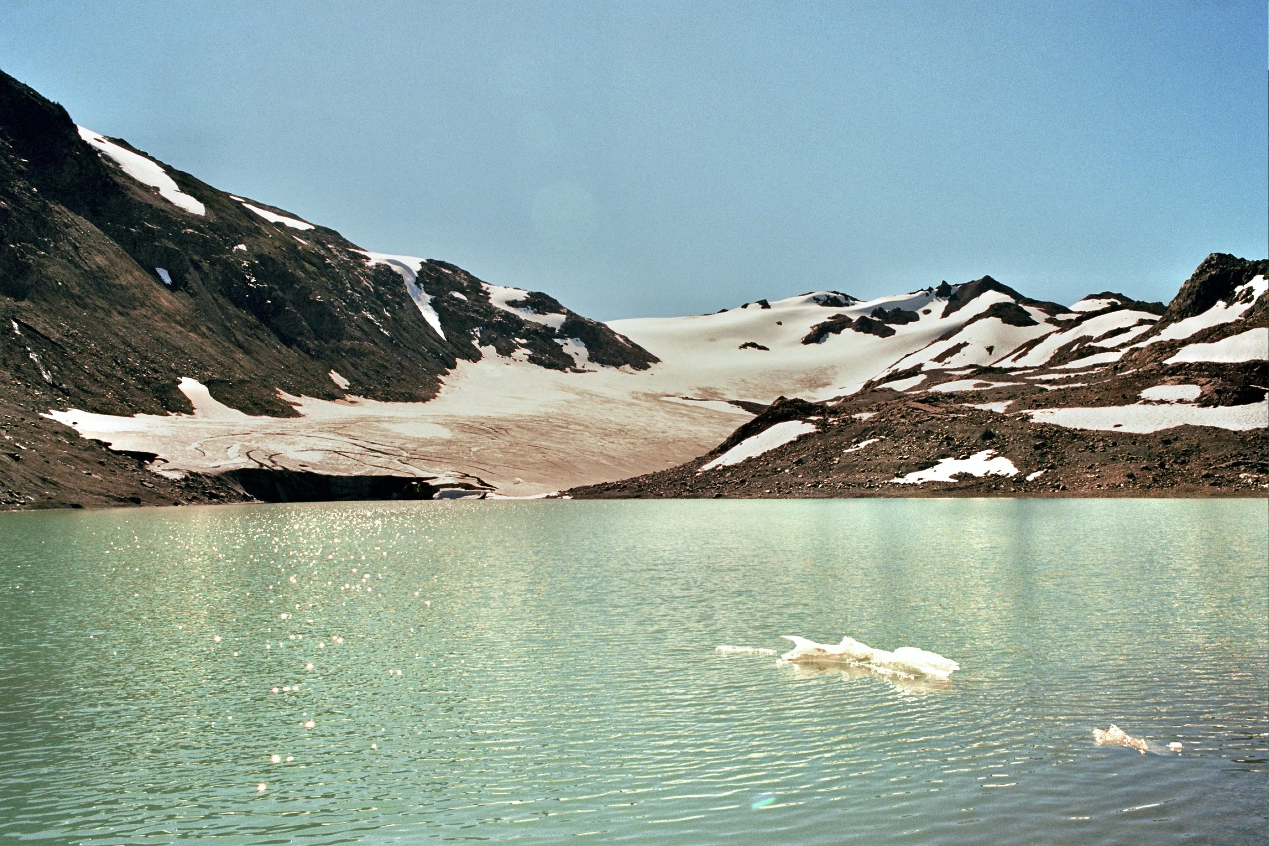 We hiked to and explored the area around Helm Glacier, which was a lot of fun, especially since there is no official trail. We followed the edge of the glacier until it began to feel unsafe without proper mountaineering equipment. Afterwards, we went for a swim in the lake and climbed Cinder Cone Peak, where we were rewarded with a stunning view of Helm Glacier and the surrounding lakes.