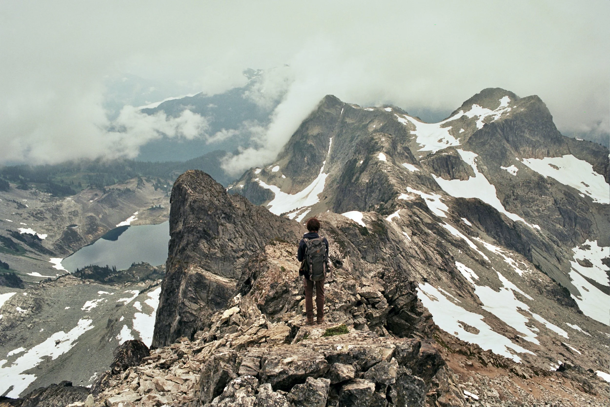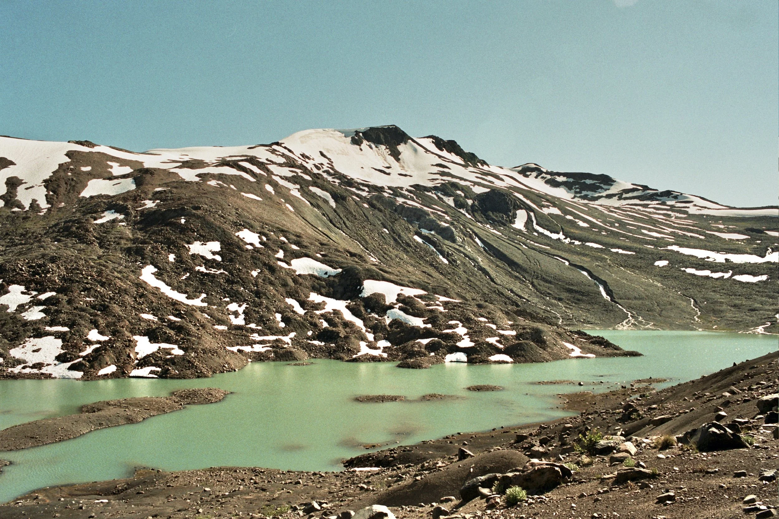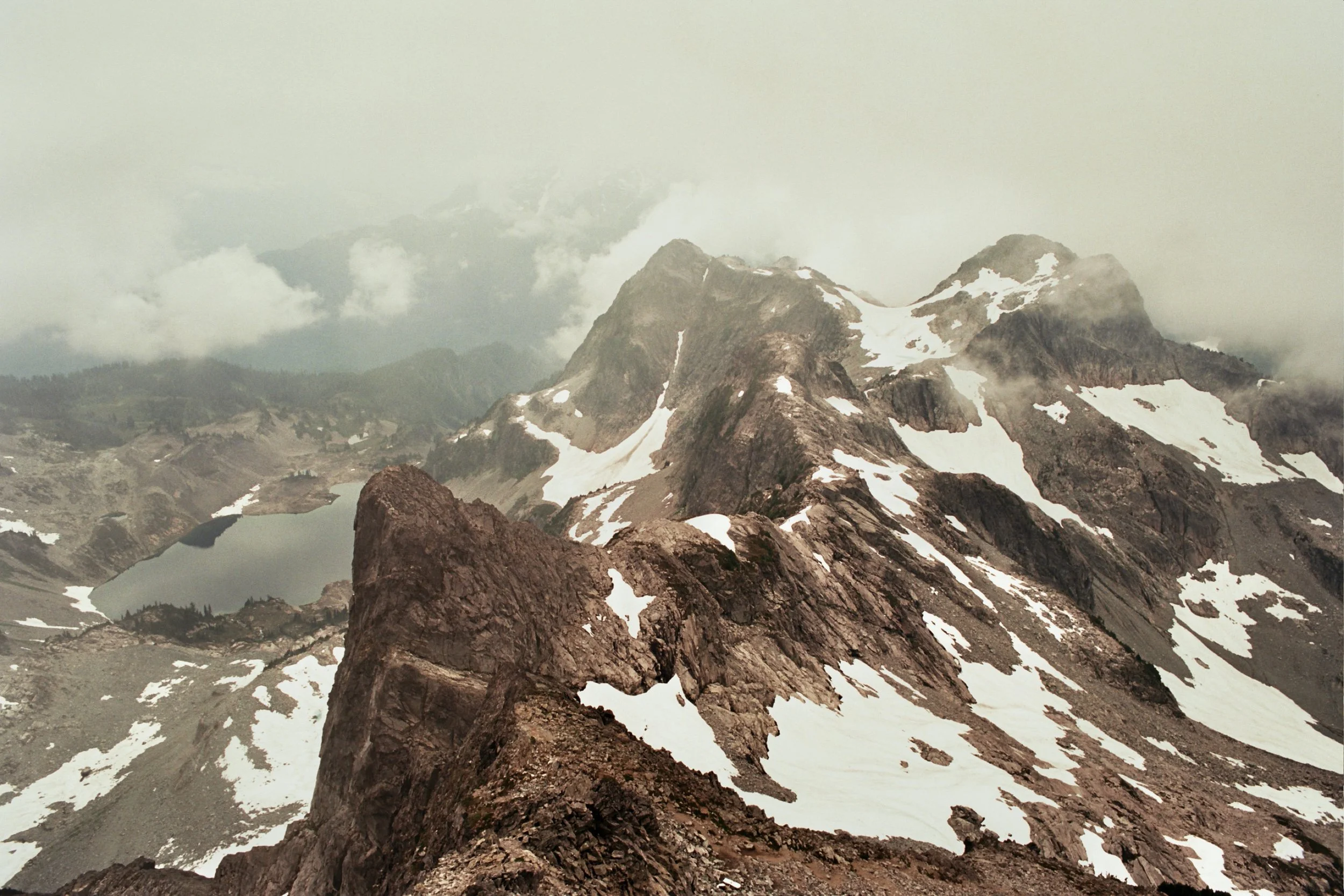 In the morning, we set out toward Whirlwind Peak. However, just a few hundred meters below the summit, we decided to turn back, as we didn’t feel comfortable crossing the thick snowfield without helmets, ice axes, and crampons. Although the peak is usually mostly snow-free in summer, this year’s heavy snowfall had left significant coverage.